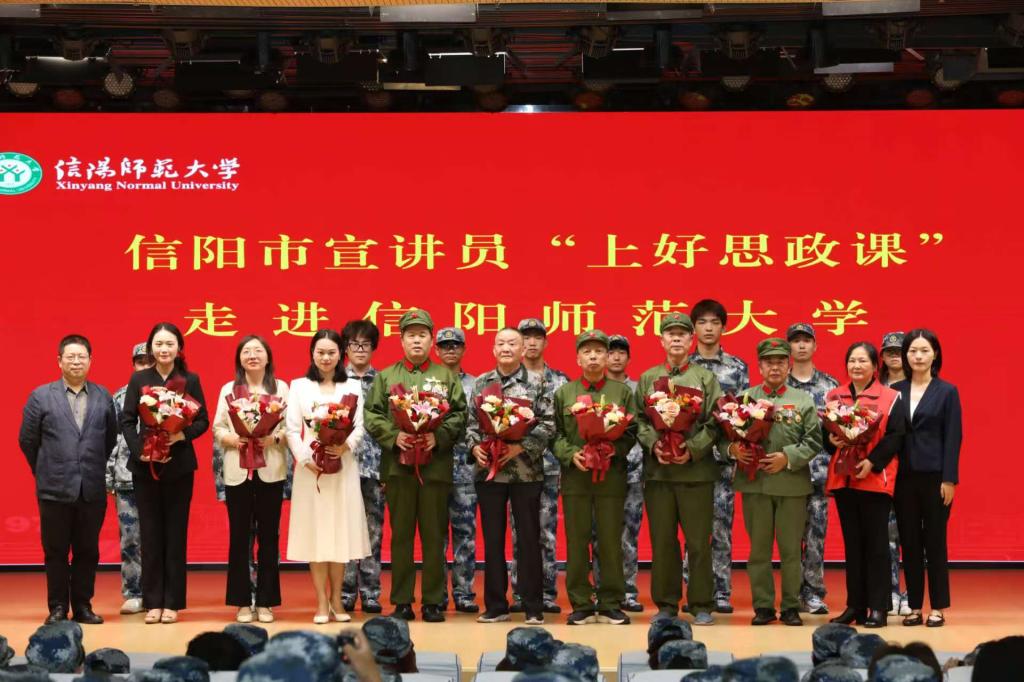 9月19日,由信阳市委宣传部主办、我校承办的“上好思政课”专题宣讲活动在理科楼报告厅举行。党委宣传部常务副部长张楠、党委学生工作部副部长杨乐、人民武装部副部长付春锋,信阳市退役军人新时代前锋宣讲团成员及400余名新生参加。