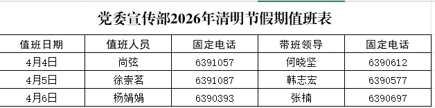 2026年清明节假期值班...